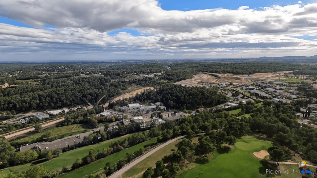 Parcours piétons et cyclables, équipements sportifs et culturels, dynamique associative, proximité des forets et de la garrigue… Saint-Gély est décidément aux antipodes d’une cité dortoir, tout en restant dans le cadre d’un harmonieux développement urbain. Depuis plusieurs années, nous parcourons le territoire de Saint-Gély pour y découvrir depuis le ciel ses espaces naturels ou urbanisés. Il y a beaucoup à découvrir dans cette commune en pleine mutation : son urbanisme, ses réseaux routiers et ses projets économiques souvent ambitieux et innovants, comme la future implantation du plus grand studio numérique de cinéma d’Europe. Survoler le golf de Coulondres, le centre-ville, les aménagements pour le sport, la ceinture boisée… n’a pas toujours été chose aisée. La ville est protégée par quatre collines qui s’opposent aux vents dominants, souvent au diapason du vent « fripon » de Georges Brassens, l’enfant adoptif du village.
