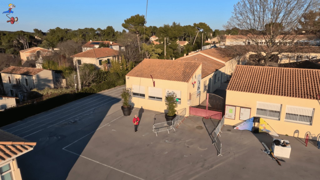 C’est presque par hasard que nous avions « atterri », en fin d’après-midi, sur la plaine de jeux située au cœur même du village de Vacquières. Quelques dizaines d’enfants couraient, chahutaient joyeusement à deux pas de leur école, sur un bel espace combinant place des festivités, terrain de sport et jardin d’enfant, le tout adossé à quelques platanes centenaires et s’ouvrant sur un paysage champêtre et charmant.