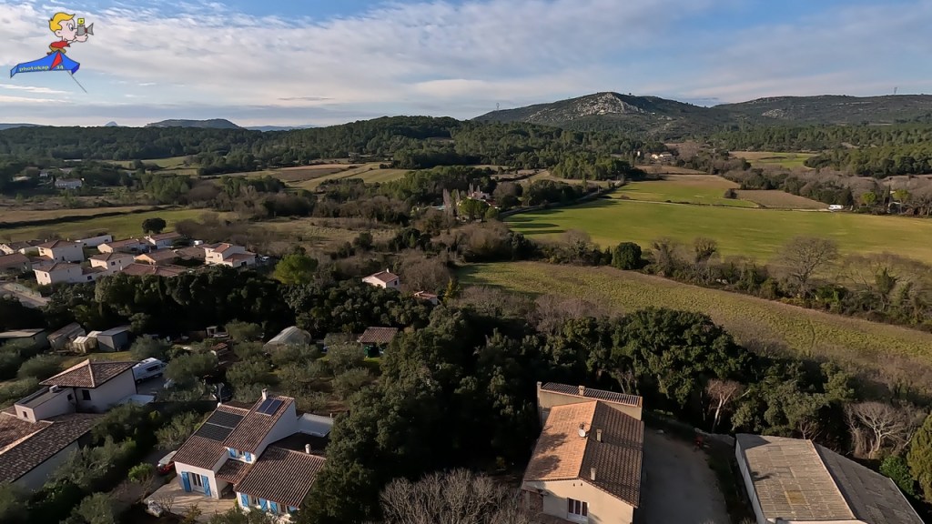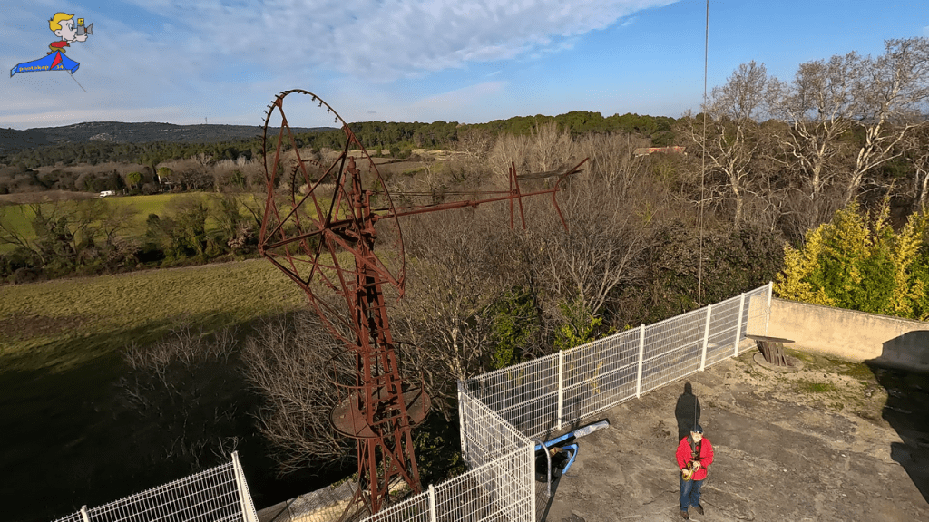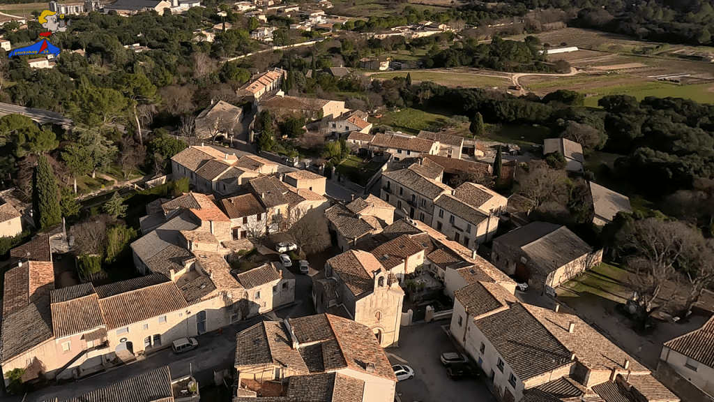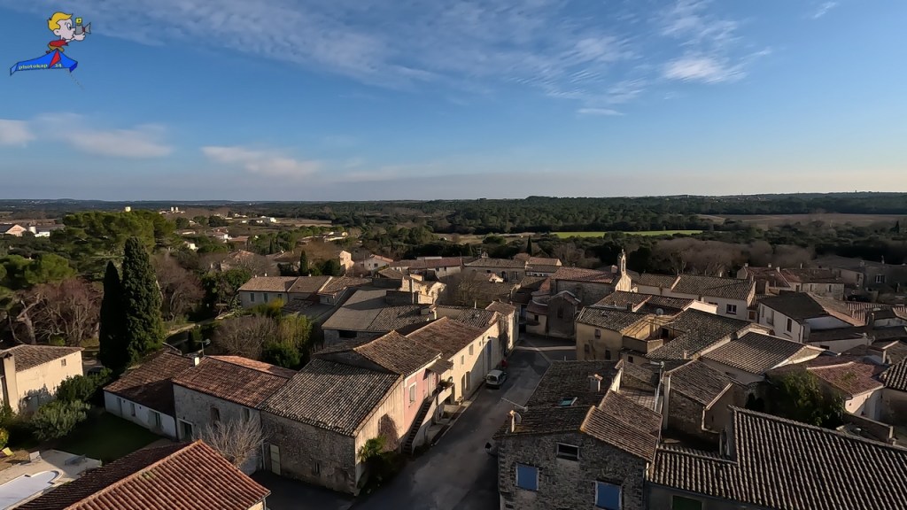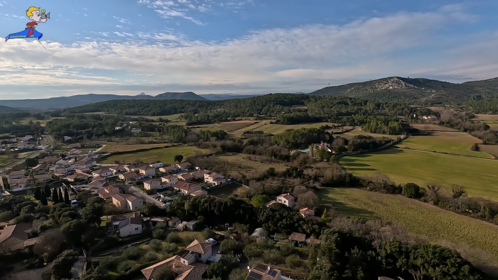 Village de moins de 400 âmes (en 2022), on pourrait aisément faire l’impasse sur Buzignargues1, si discret, presque secret… mais nous avions un objectif : survoler 36 communes et c’était sans concessions. Situé à l’est du territoire du Pic Saint-Loup, l’endroit est traversé par une charmante rivière répondant au joli nom de Bénovie. Il ne faut pas se fier aux apparences, car le modeste cours d’eau fut aussi un torrent qui emporta le gué et son moulin en 1858. Une anecdote historique qui fait figure, aujourd’hui, de belle leçon de citoyenneté et de solidarité quand les communautés voisines firent, alors, une souscription volontaire en journées de travail pour construire un pont, toujours là aujourd’hui. Après une visite de courtoisie, à la mairie, où nous avons été fort aimablement accueillis, on nous a indiqué une « piste de décollage » possible auprès de la vieille pompe éolienne rouillée. En milieu d’après-midi les Buzignarguais étaient probablement au travail à la ville ou dans les vignes et, de ce fait, l’impasse du jeu de ballon était désertée de ses habitants et de ses voitures.