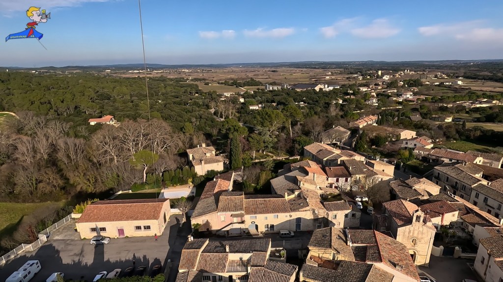 Une petite Tramontane de nord-ouest venait de se renforcer, mais l’orientation de la place, parfaitement située, nous offrait un bel effet venturi2 idéal pour l’envol de notre cerf-volant porteur. En quelques secondes nous étions à la verticale de l’église, à 100 m du sol. En vol urbain, nous avons préféré la prudence et c’est l’un de nos prototypes, un delta à cellules de 2,50 m d’envergure, conçu pour affronter les vents forts, qui nous a permis une belle découverte de ce village. De là-haut, les toitures offraient un patchwork typique qui en dit long sur la vigilance des élus, depuis des décennies, pour préserver leur patrimoine historique. « Le hussard sur le toit » n’aurait pas boudé cet endroit. Ici aussi, même à l’est du territoire, le Pic Saint-Loup veille, une petite pointe rassurante sur l’horizon et qui verra peut-être un jour la restauration du vieux moulin à vent, situé au cœur du village, par une souscription citoyenne et volontaire en temps et en talents, offerts comme à l’époque du pont sur la Bénovie.
