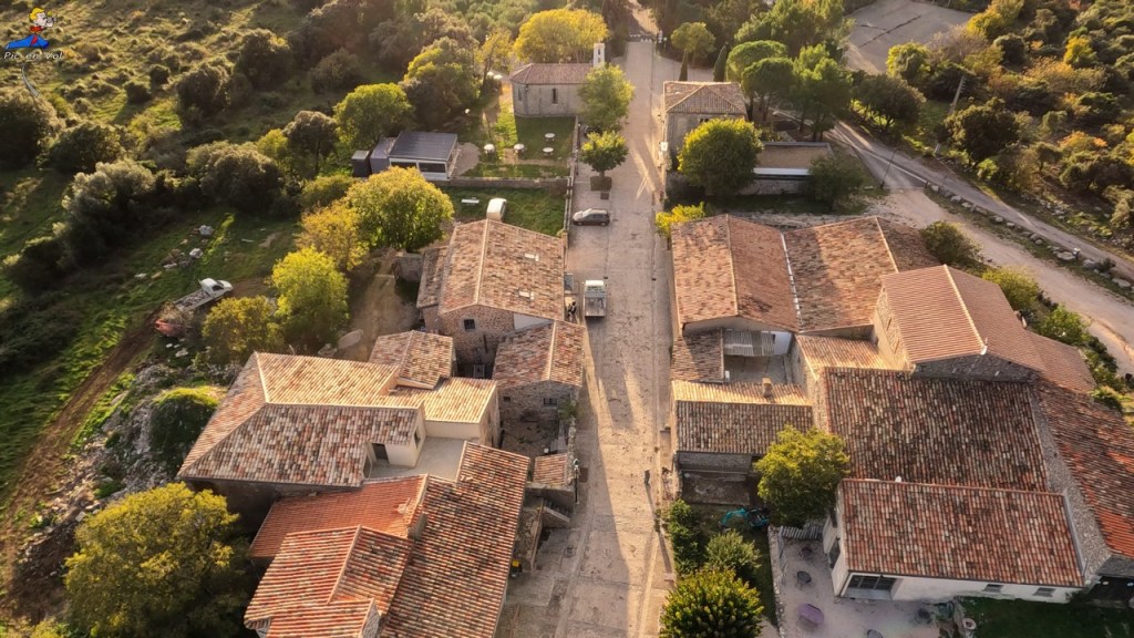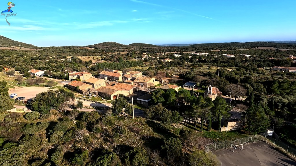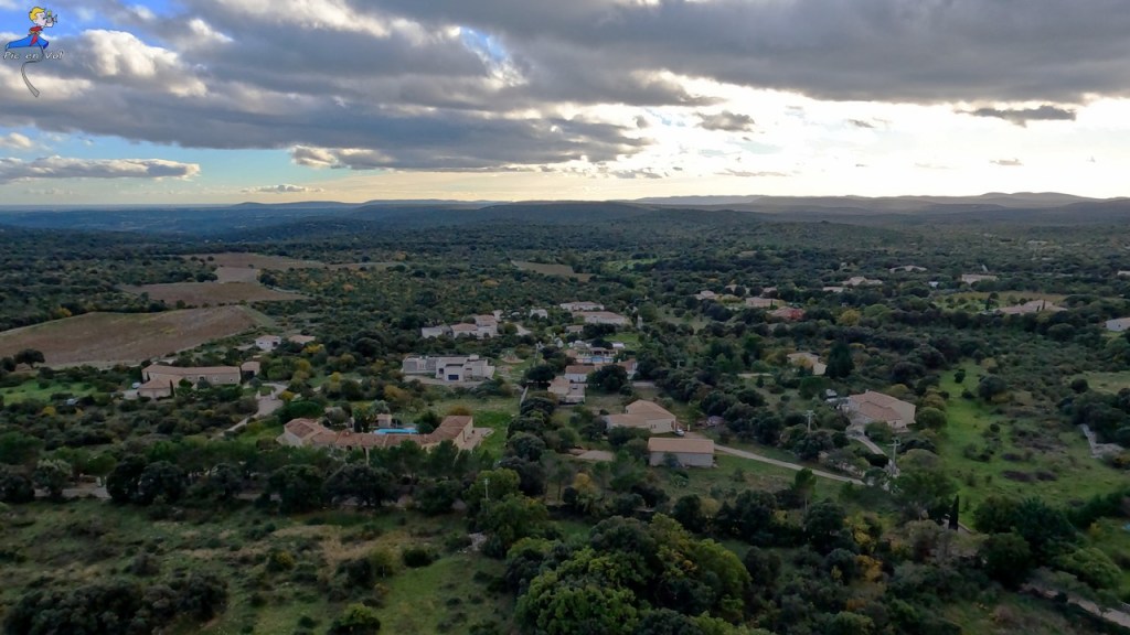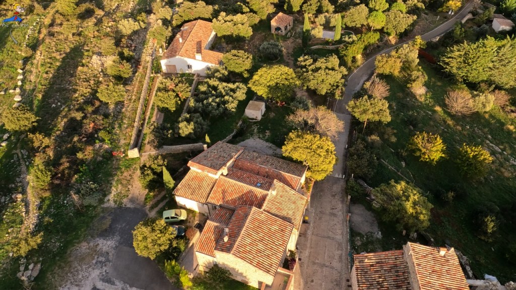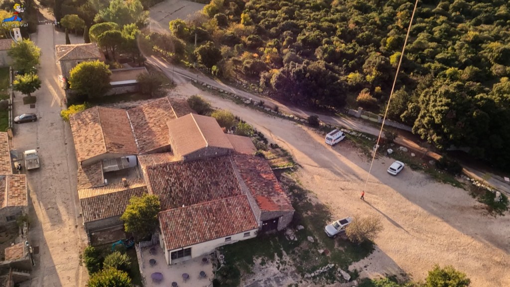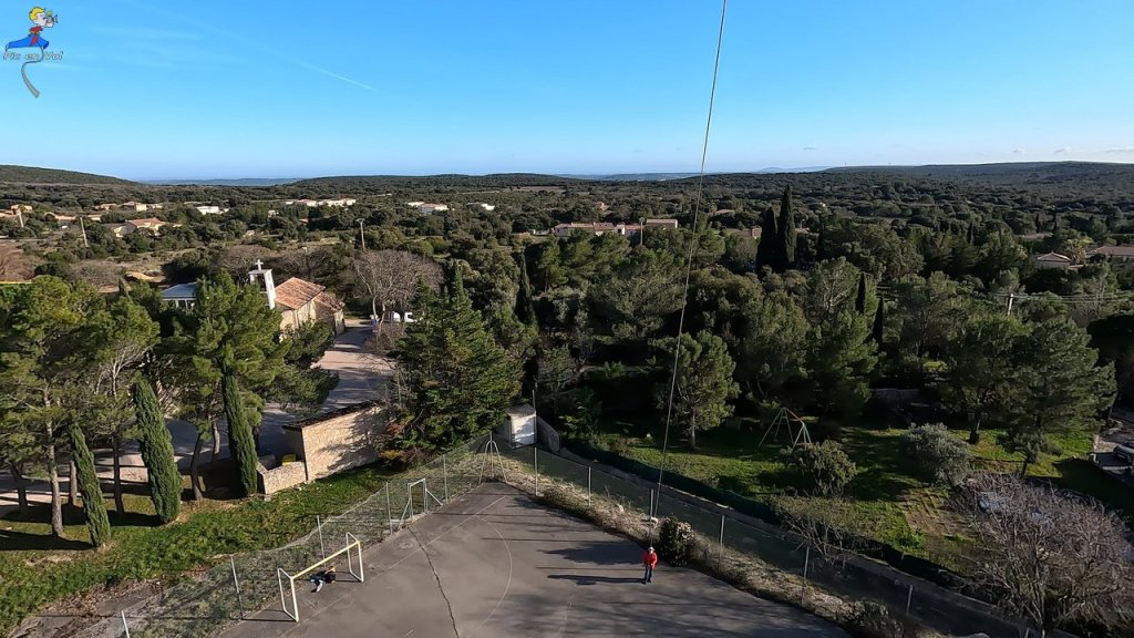 Nous sommes revenus quatre fois sur le village, non seulement pour le charme de l’endroit, mais surtout pour apprivoiser des vents particulièrement espiègles. Nous avons parcouru plus de 10 km, avant de trouver un espace propice à nos envols, sans risquer l’intervention des couvreurs ou des pompiers pour récupérer nos cerfs-volants sur les toits ou dans les arbres. C’est finalement sur le terrain de tennis, à l’abandon, que nous avons pu nous élever avec un grand delta de 5 m d’envergure. En prenant un peu de hauteur, nous n’avons pas été déçus du panorama, Cazevieille est un village typique et charmant, son environnement est remarquable, dans lequel la nature est omniprésente, mais le travail de l’homme a aussi façonné, ici, des paysages d’exception2.
