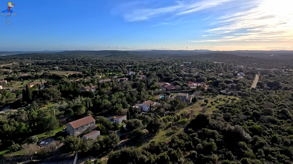 Cazevieille1 est la commune la plus proche du Pic Saint-Loup, face sud. C’est ici que sera porté le point final de nos reportages de l’aventure « Pic en Vol », après l’ascension du Pic afin d’y faire voler, pour la première fois de son histoire, l’un de nos cerfs-volants photographe, à 658 m d’altitude. Un véritable challenge ! La crête abrupte est exposée à de nombreuses turbulences et à toutes les ascendances, si prisées par l’école de vol à voile sur le versant nord. Une fois encore, en semaine et en fin d’automne, c’est dans un « no man’s land » que nous avons débarqué avec tout notre attirail. Seuls quelques rares randonneurs de la voie d’Arles et des chemins de Compostelle, furent intrigués par nos premiers envols sur le parking du départ du chemin des crêtes. Ici, dans six mois ce sera une « autoroute à piétons ».