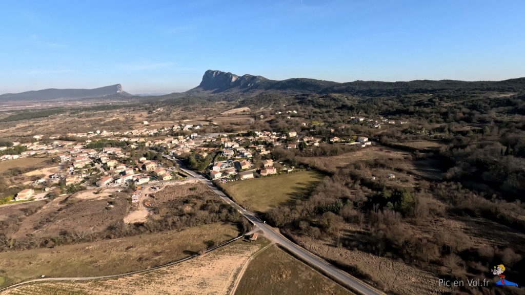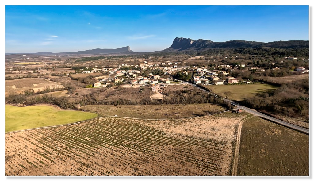 Aujourd’hui, les paysans ont façonné le paysage et asséché les eaux stagnantes. Au Mas de Londres, il ne reste du château médiéval qu’un seul un tronçon de remparts percé de meurtrières. Il fut en effet remplacé au XVIe par une belle demeure bâtie par le seigneur du lieu, un membre de la famille Roquefeuil, disparue aujourd’hui, il servit de carrière pour les constructions du village. Seule l’église romane du XIIe siècle est restée le témoin de cette époque.C’est sur les bords des eaux bleues du réservoir collinaire de la Jasse, que nous avons débuté nos randonnées photographiques aériennes du projet « Pic en vol ». La face nord du Pic est la plus abrupte, ici, la montagne porte bien son nom. Il nous fallait être prudents, car une école de vol à voile renommée, basée sur le territoire du Mas de Londres, entraine ses élèves pilotes sur les puissantes ascendances des falaises de l’Hortus et du Pic Saint-Loup. Nos envols, sur les rives du lac bleu, furent donc brefs et limités en altitude, nous étions à l’affût du moindre bruit de moteur des remorqueurs des planeurs, qui décollaient toutes les 30 minutes de la piste située à moins de deux kilomètres de notre position. Le jeu en valait la chandelle, car l’endroit relevait du sublime, surtout en prenant, à notre tour, de l’altitude. Nous avions par la suite tenté plusieurs envols au cœur du village historique. A moins de 100 m de la mairie, sur le chemin du mas de Garonne, nous avions trouvé un champ en jachère et non cloturé. Au premier envol, des hennissements de l’autre côté d’un rideau d’arbres, avaient interrompu notre séance de K.A.P. les animaux doivent aussi être autant respectés que les gens, nos cerfs-volants n’étaient pas les bienvenus ici. C’est donc dans un autre pré, non cultivé, que nous avons échoué, sur la route de Saint-Martin de Londres, mais pour un survol qui restera panoramique.
