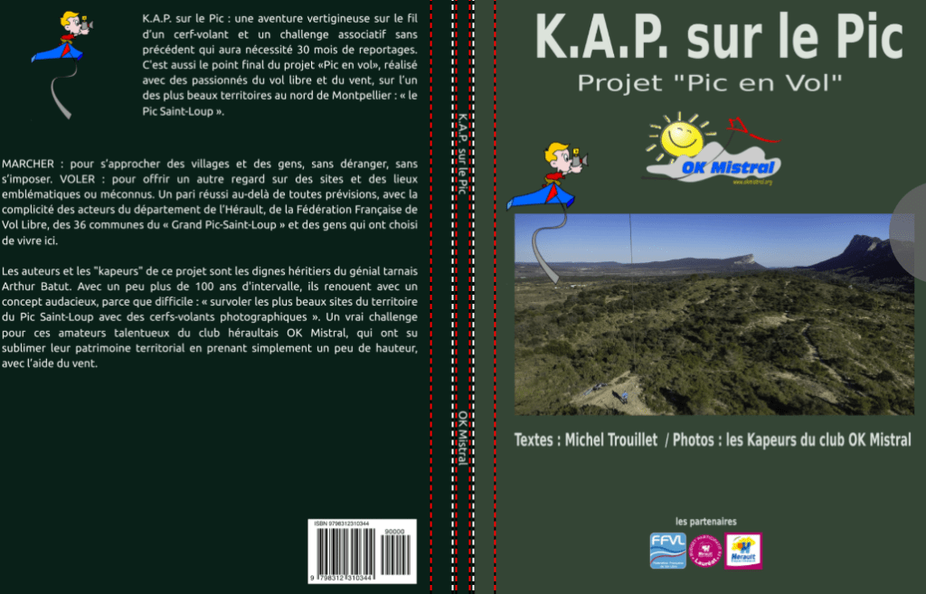Pic en en vol et K.A.P. sur le Pic : ce fut une aventure vertigineuse sur le fil d’un cerf-volant et un challenge associatif sans précédent qui aura nécessité 30 mois de reportages. C’est aussi le point final du projet «Pic en vol», réalisé avec des passionnés du vol libre et du vent, sur l’un des plus beaux territoires au nord de Montpellier : « le Pic Saint-Loup ».